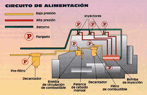La bomba de inyeccion, manda mas combustible del necesario, el inyector toma lo que necesita y el resto lo devuelve al deposito.